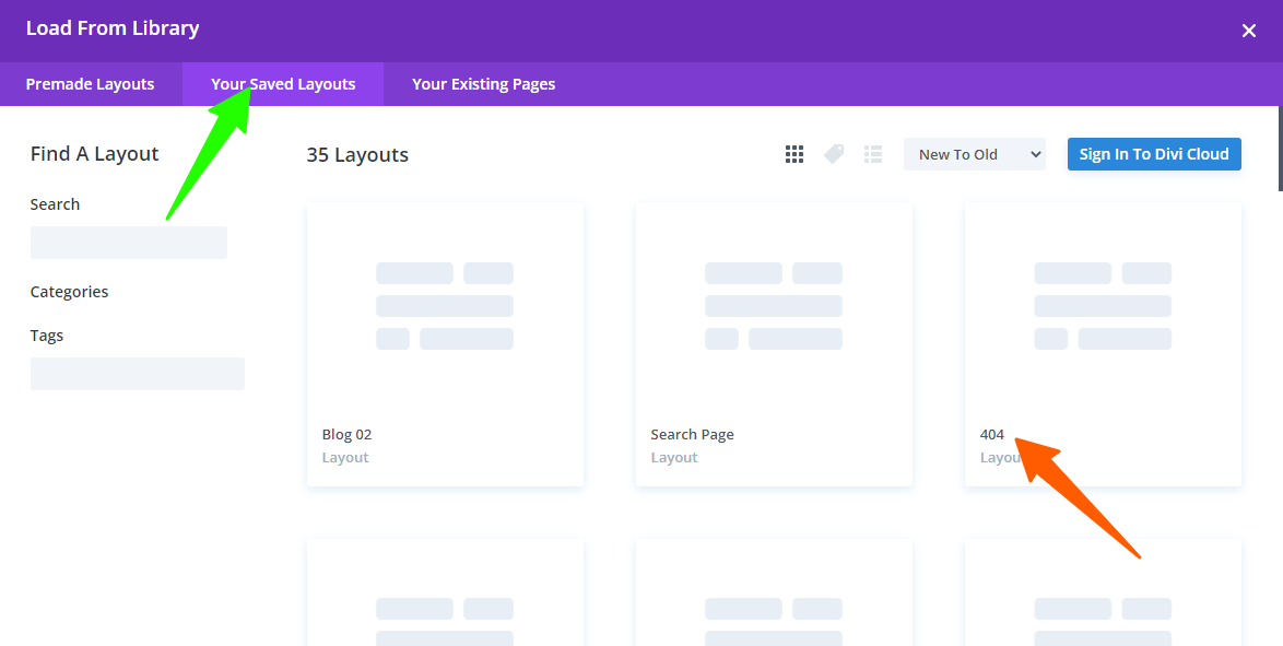 Click "Your Saved Layouts". From here you can select the Layouts you'd like to use. Then click 'Use This Layout.'