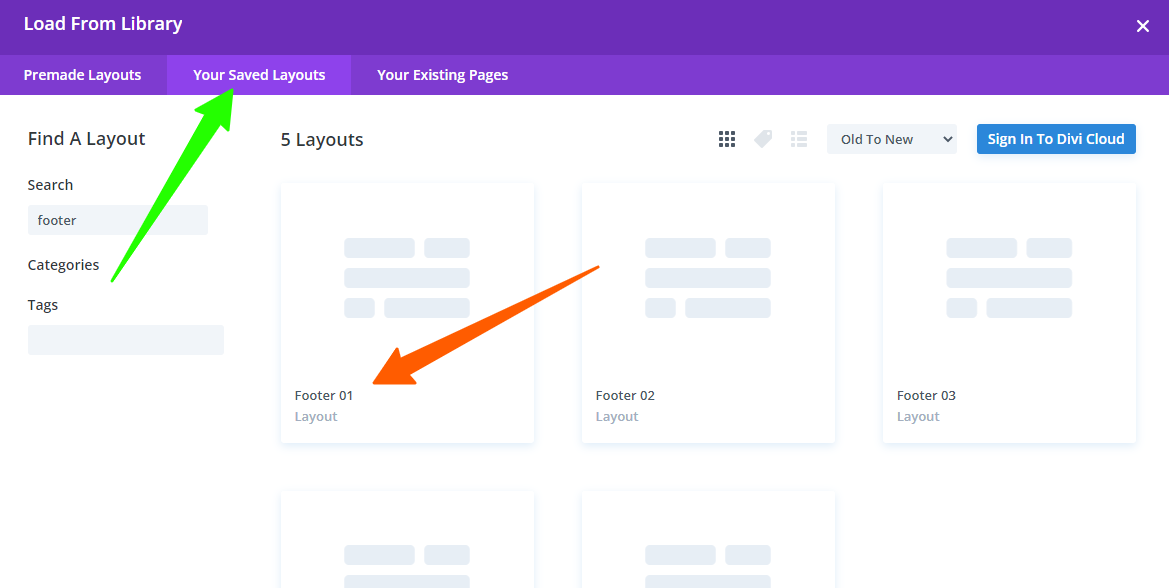 Click "Your Saved Layouts". From here you can select the Layouts you'd like to use. Then click 'Use This Layout.'